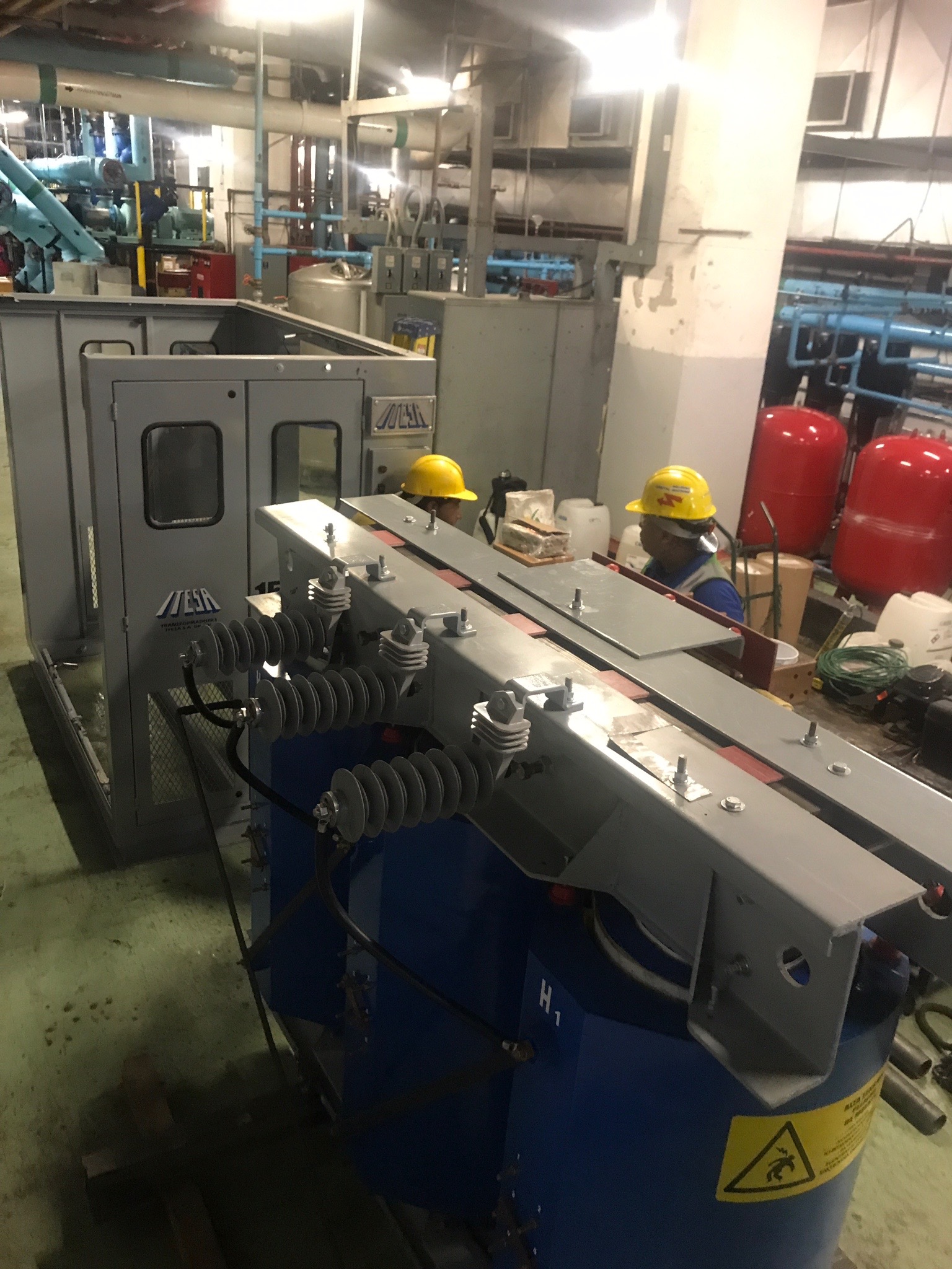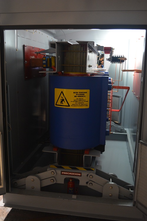 Tensiones del primario: 2,300v., 4,160v., 13,200v., 23,000., 34,500., con cuatro derivaciones estándar de +-2/2 x 2.5 c/u de la tensión nominal, conexión delta/estrella.